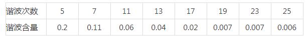 2) 整流裝置所產生的諧波為6K+1次奇次諧波,采用傅立葉級數對電流進行分解變換,可知電流波形含有6K±1次高次諧波,根據對預應力鋼棒熱處理生產線的測試數據,其諧波電流含有量見下表: