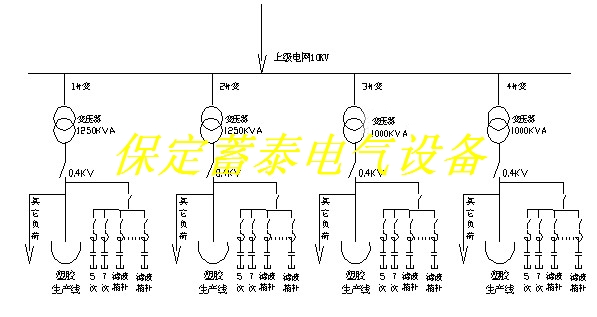 河北某塑膠制品公司是生產(chǎn)戶內、外廣告燈箱布、噴繪布,PVC壓延膜的廠家,生產(chǎn)線主要設備為變頻器、直流電機,變頻器及直流電機整流屬于典型諧波源,產(chǎn)生大量諧波,造成補償電容器無法正常投入運行且電容器再投入后造成諧波放大,用電設備運轉故障率高,電容器經(jīng)常燒毀,功率因數(shù)僅為0.56,每月產(chǎn)生無功罰款4.3萬元左右,變壓器溫度在夏季達70度,造成電能浪費,壽命縮短。
