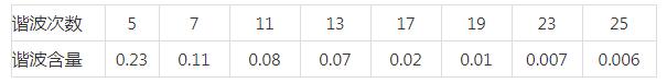 2) 整流裝置所產(chǎn)生的諧波為6K+1次奇次諧波,采用傅立葉級數(shù)對電流進行分解變換,可知電流波形含有6K±1次高次諧波,根據(jù)對塑膠生產(chǎn)線的測試數(shù)據(jù),其諧波電流含有量見下表: